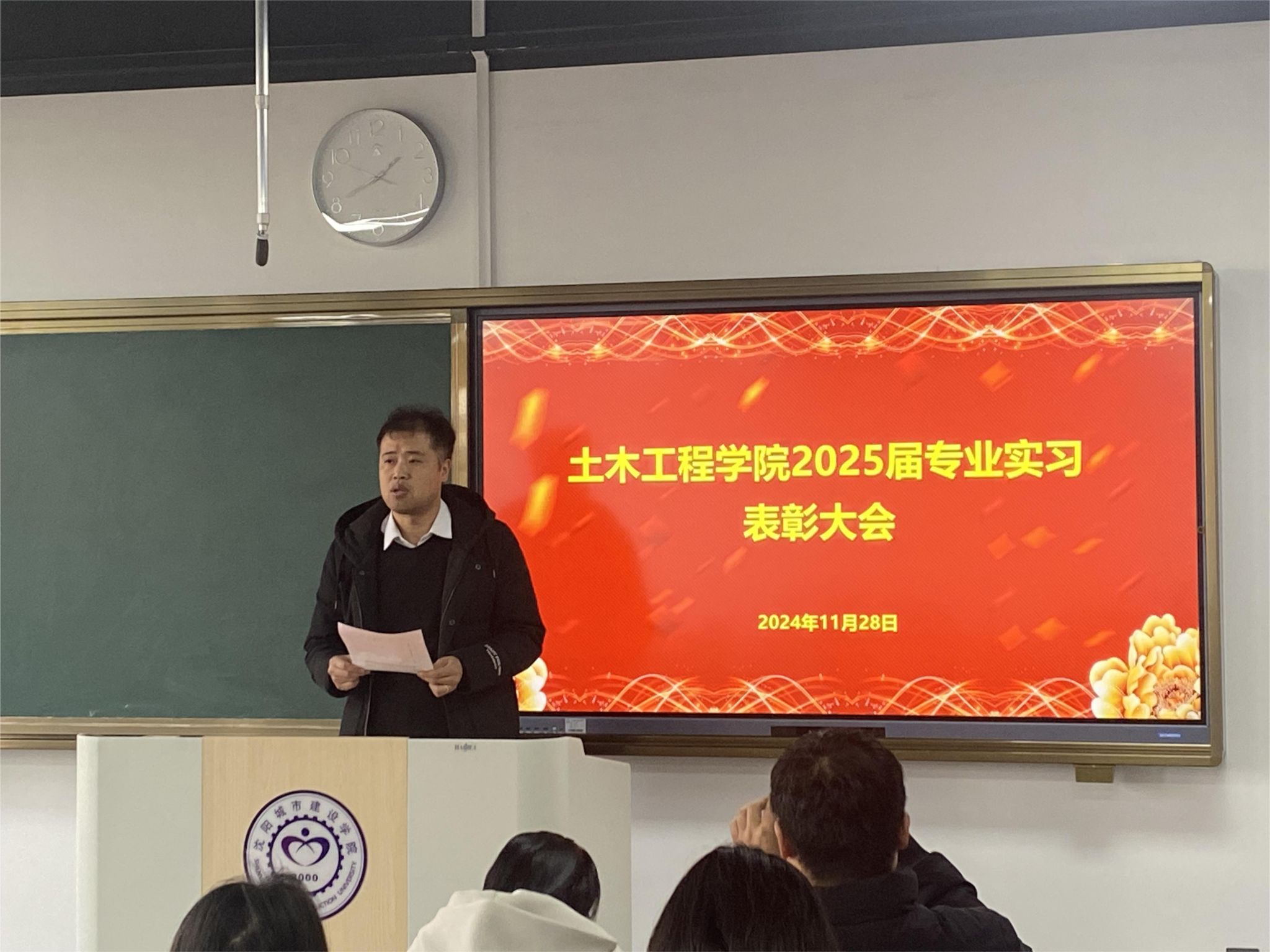 11月28日,太阳成集团tyc234cc在知行楼414召开了2025届专业实习先进个人表彰大会,太阳成集团tyc234cc副院长、党总支书记钟建东,副院长齐庆会,副院长于明鑫,学院专任教师代表以及2025届、2026届毕业生学生代表参加了大会,会议由于明鑫主持。