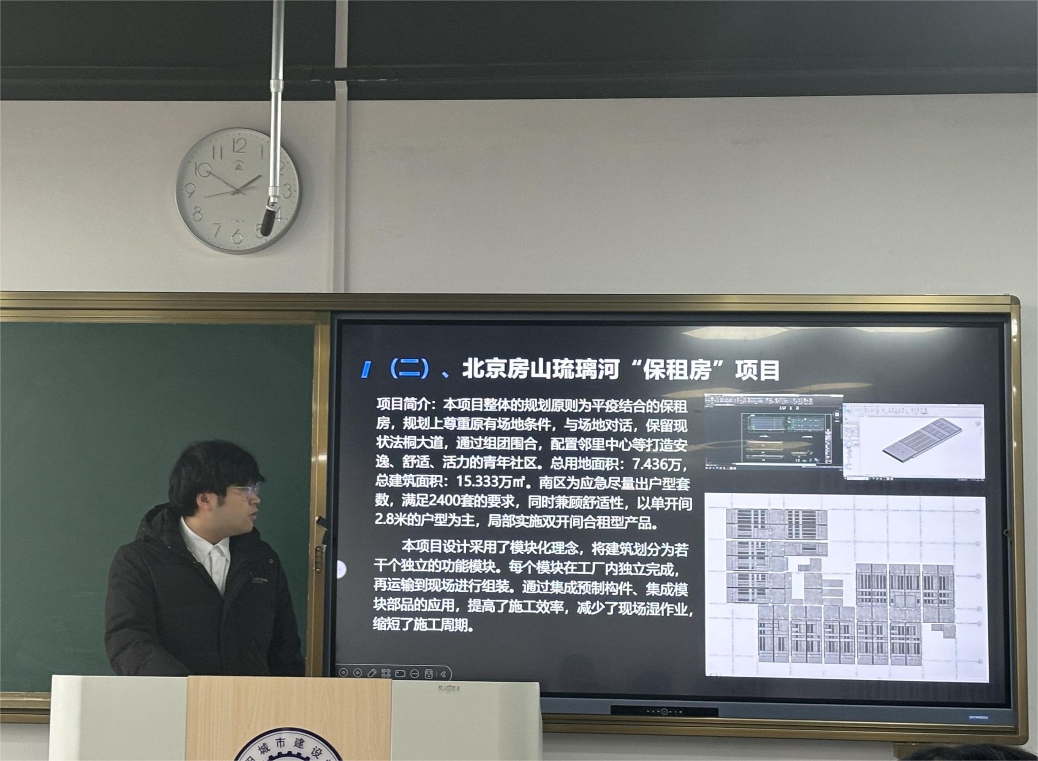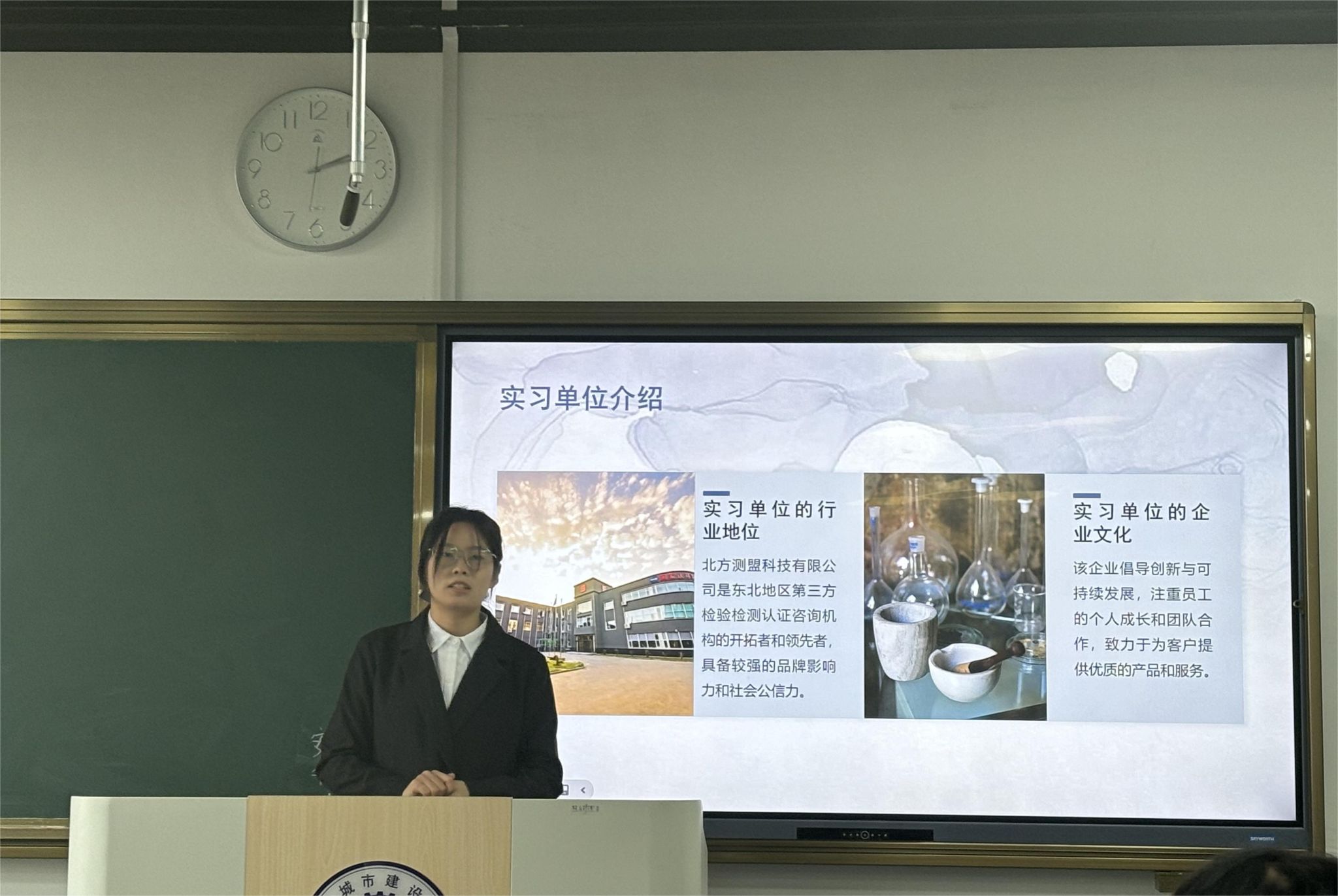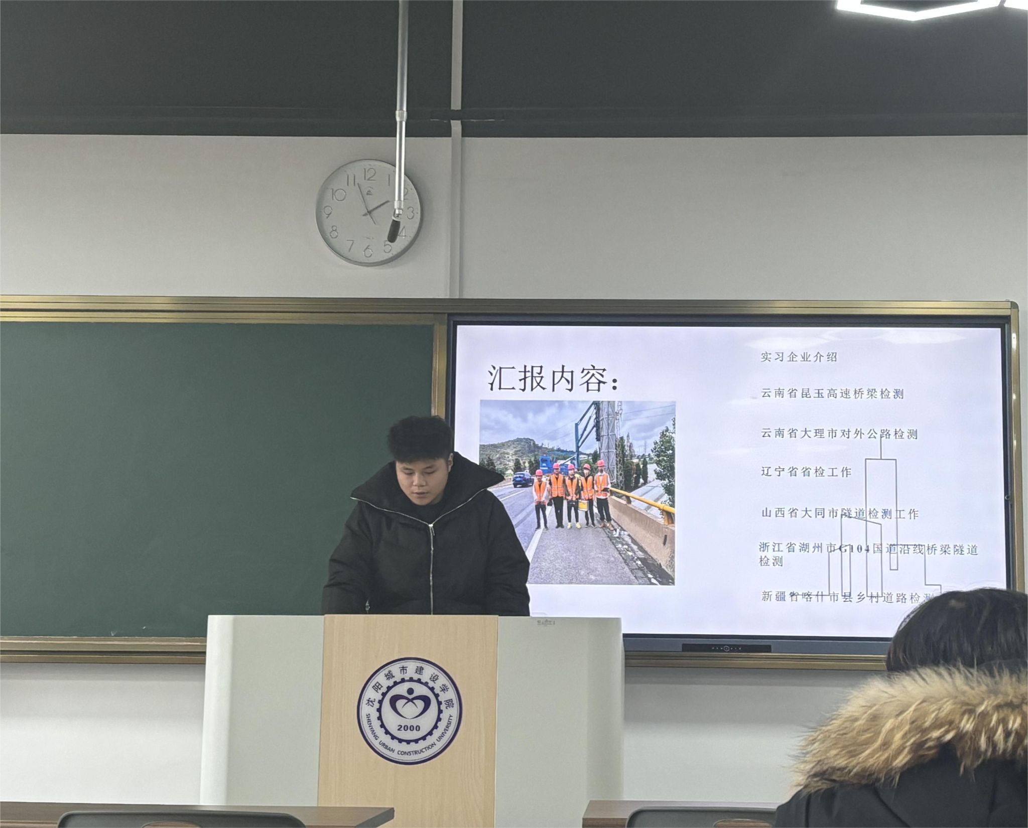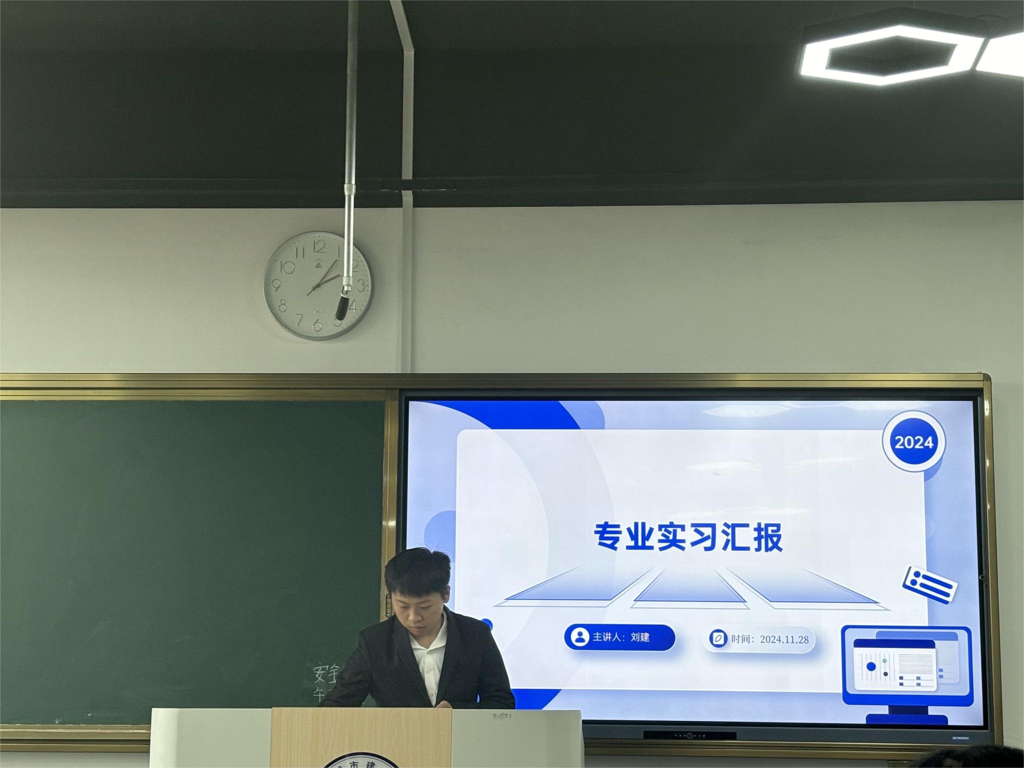 各专业实习先进个人代表结合自身的专业实习经历进行了汇报。土木工程专业段笔勋同学分享了实习与实训过程中在工程测绘员岗位上的工作收获;道路桥梁与渡河工程专业孟庆欢同学向大家讲述了作为桥梁隧道检测员的工作经历,讲解了自己将理论知识与工程实践相结合的具体过程;智能建造专业段茳弘同学总结了自己从事BIM设计工作的心路历程,并分享了工作成果;测绘工程专业陈福明同学基于自己的实习经历讲述了对传统测绘和现代测绘的理解,强调在测量工作中必须保持数据的原始性,为了确保计算的正确性可有效性,需要反复校对各个测点的数据是否正确;安全工程专业刘建同学系统学习了安全管理的理论知识,包括风险评估、事故预防和应急响应。通过实践,能够将理论知识与实际工作相结合,提高了解决实际问题的能力;无机非金属材料工程专业的王姝晴同学介绍了在北方测盟科技有限公司的工作经历,对涂料的性能测试有了更深入的理解,为未来从事相关工作打下了坚实的基础。专业实习先进个人的实习实训经历和收获分享为2026届即将走向实习岗位的学生们指明了未来的方向。