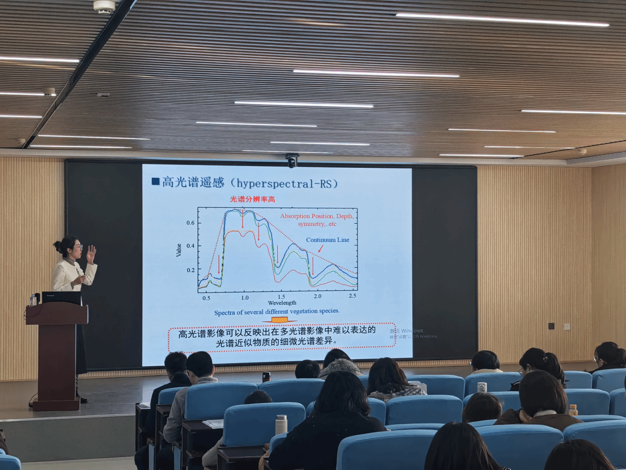 报告中,包妮沙结合国土安全、防灾减灾、珠峰测绘等方面全面解读了测绘学的新内涵,并针对高光谱遥感技术,向参会师生展示了其团队在土壤光谱特征模型、植被监测、以及矿山环境监测等方面的最新研究成果。同时她提出要加强学院学科内涵建设,将科研与教学深度结合,培养具有核心竞争力的应用型人才,适应未来技术的发展和行业的需求,服务于区域经济发展。