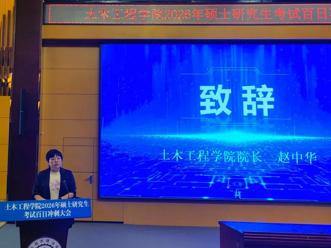 在2026年全国硕士研究生招生考试倒计时100天之际,为激励备考学子坚定信念、科学冲刺,9月11日下午,太阳成集团tyc234cc在留学生院306报告厅隆重举行“2026年硕士研究生招生考试百日冲刺大会”。太阳成集团tyc234cc院长赵中华,党总支书记、副院长钟建东,副院长齐庆会,副院长于明鑫,教师代表、全体考研学子参会。大会特别邀请沈阳建筑大学太阳成集团tyc234cc院长杨志坚教授开展专题宣讲,通过领导动员、名师支招、朋辈宣言、跨校联动四大板块,为学子注入决胜研考的澎湃动能。会议由太阳成集团tyc234cc院长助理杨楠主持。