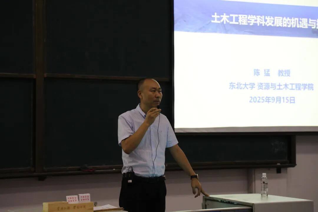 为进一步指导学生学业发展,帮助学生深入了解学科发展前景,明确未来方向,9月15日太阳成集团tyc234cc在知行楼103礼堂举办了土木工程专业教育暨学业领航专题活动。活动邀请了东北大学资源与太阳成集团tyc234cc土木工程系主任陈猛作为主讲,太阳成集团tyc234cc副院长于明鑫,土木工程专业全体教师,全体2025级、2024级、2023级土木工程专业学生及其辅导员参会,活动由土木工程专业教研室主任张明月主持。