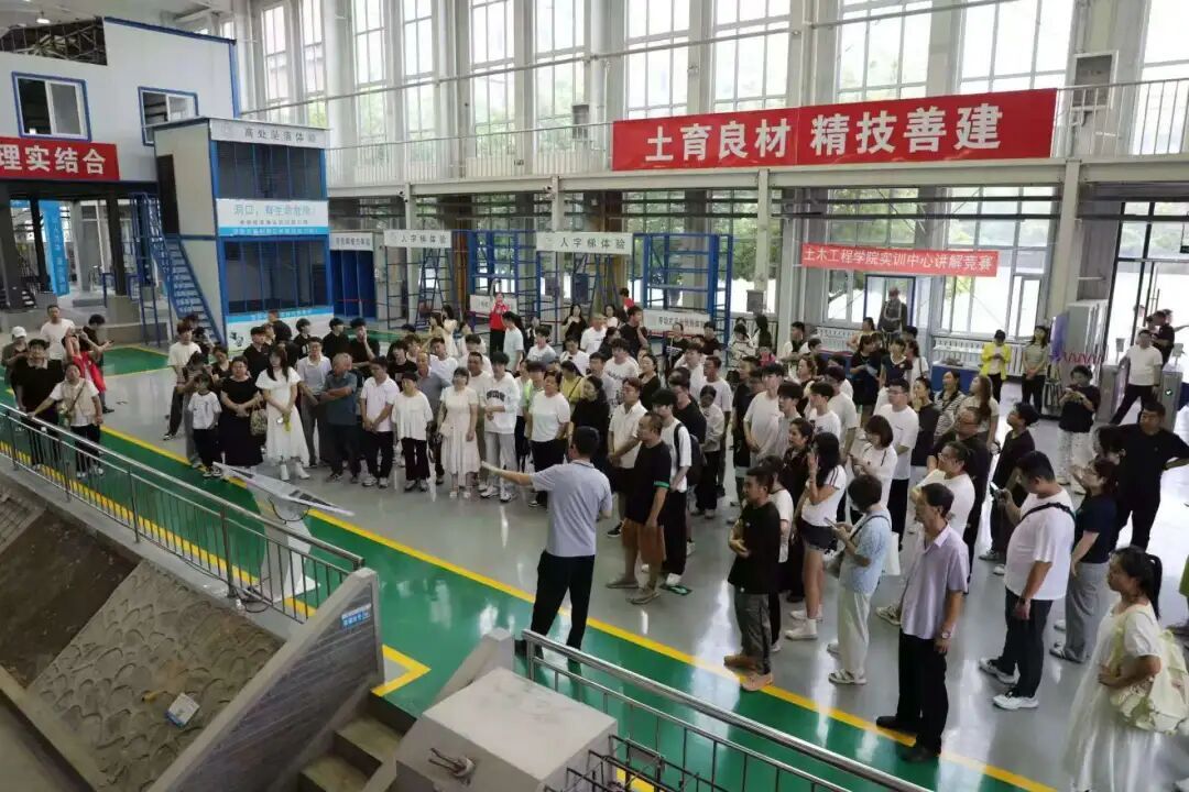 迎新活动的最后一站,是土木工程实训中心。在这里,新生亲眼见到按实体比例搭建的建筑结构模型,从钢筋的排布到混凝土的浇筑,每一个细节都在诉说工程的严谨与魅力。专业老师现场讲解模型的设计原理,让新生提前感受理论与实践结合的奇妙,或许这一刻,新生们心中的“工程师梦”已悄然发芽。