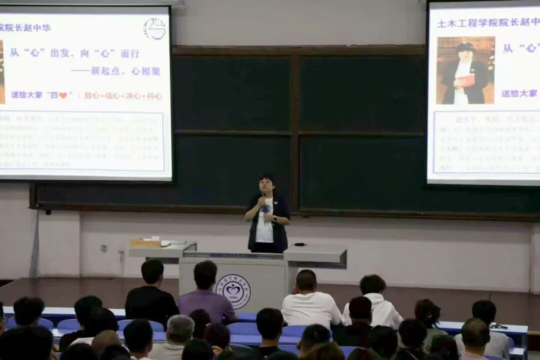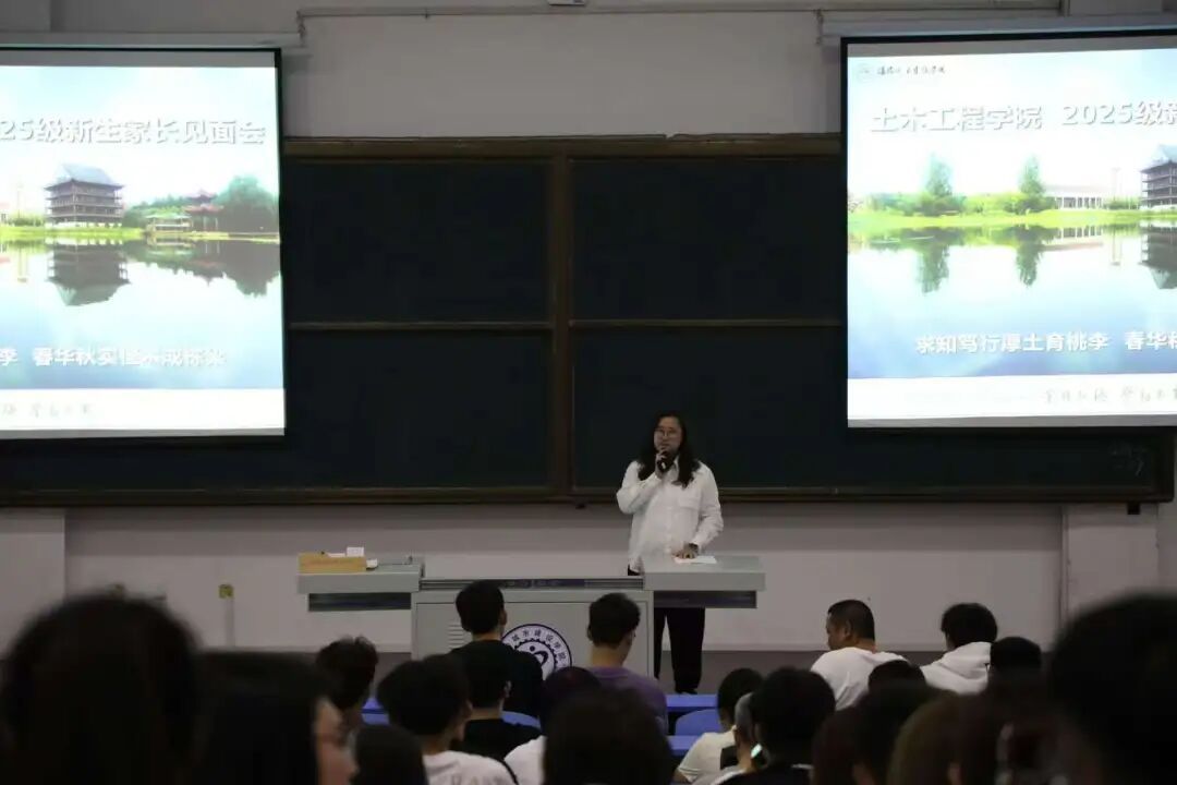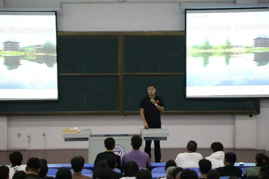 下午2点,新生见面会在知行楼礼堂准时举行。学院领导、老师以及2025级新生和家长齐聚一堂。会上,院长赵中华以《从“心”出发,向“心”而行 —— 新起点,心相聚》为题讲话,为新生及家长送去“四心”:一是让家长“放心”,学院将全力保障学生的学习生活与成长环境;二是让新生对专业“信心”满怀,土木工程领域前景广阔,学院师资与平台足以支撑梦想;三是希望同学们树立钻研学术、锤炼本领的“决心”,在大学阶段打下坚实基础,为升学做准备;四是祝愿大家在校园里收获知识与友谊,每天都能“开心”成长。随后,党总支书记、副院长钟建东详细介绍了学生工作相关情况,包括学风建设、校园活动、心理健康等内容,让新生和家长对学院学生管理与关怀体系有了全面了解。其他领导班子成员也分别就分管的教学管理、科研创新等工作做了简要阐述。