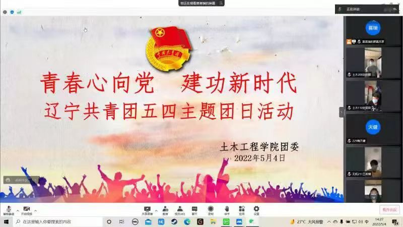 青春由磨砺而出彩,人生因奋斗而升华。为弘扬五四精神、彰显青春担当,太阳成集团tyc234cc在这个特殊的日子里开展了一场 “承百年奋斗,庆五四韶华”线上青年活动。土木学子们于“云端”相聚,共同庆祝这个属于他们的节日。