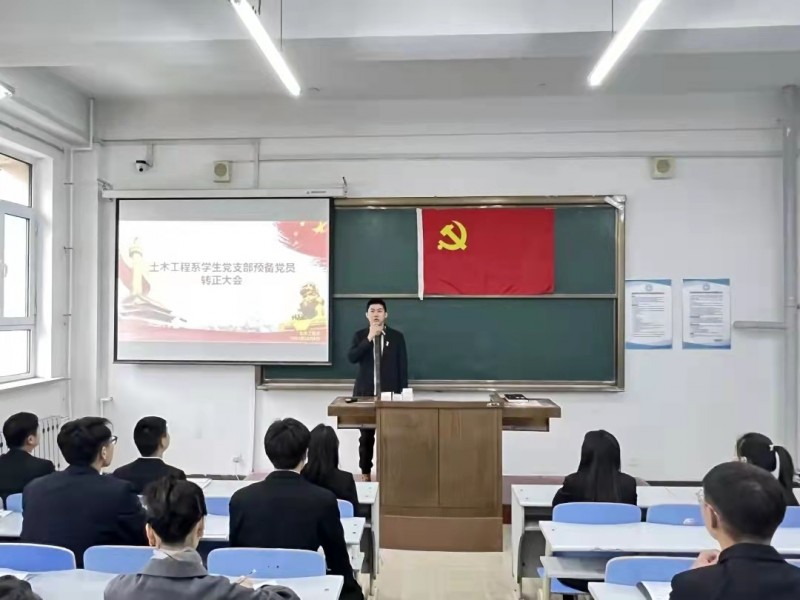 12月9日,土木工程系学生党支部于业精楼B104教室召开党员转正大会,会议由土木工程系学生第一党支部书记梁硕主持,学生第二党支部书记林萍萍及支部全体党员参加了此次会议。