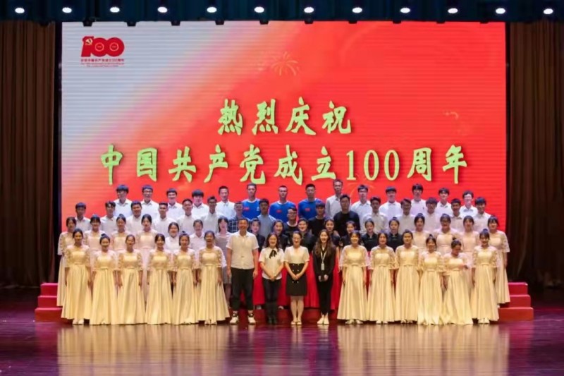 7月1日,在活动前,校党委书记崔景懿带领全校党员师生重温入党誓词。他激励党员永远听党话,跟党走,充分发挥党员的先锋模范作用,为中华民族伟大复兴奉献真情和力量。随后,各党总支师生队伍身着统一服装,以整齐的队列、饱满的热情、良好的精神面貌逐一登场,惊艳亮相,唱响时代主旋律、重温光荣历史,深情讴歌党的丰功伟绩,祝福祖国繁荣昌盛。其中土木工程系的《灯火里的中国》最令人印象深刻,节目开场的几段对话无不令人动容,为了祖国的发展建设而不能尽孝的飞行员,为了能让更多的孩子们有学上而集资建校的张桂梅,为了挽救更多人的性命不顾自身安危而奋战在前线的医务工作者们。那些为了祖国和人民而无私奉献的人们最令人敬佩。随着音乐的响起,舞台上同学们轻盈优美的舞姿,道出了灯火里的繁华似锦和安详宁静、灯火里的奋发图强和生生不息。同学们娓娓动听、感心动耳的歌声,表达了对祖国最美好的祝愿。最后,同学们高举手中的红旗放声歌唱,歌唱我们伟大的祖国,祝愿我们的祖国繁荣昌盛!合唱团的顺利演出离不开指导老师的辛苦付出,在张琳和于琦两位老师对整个文艺节目的编排和指导下,呈现了一场振奋人心、令人赞叹的演出,令人久久不能忘怀。一首首脍炙人口、催人奋进的红色歌曲抒发了我校师生对党、对祖国的热爱之情。如今我们正走在中国特色社会主义新时代的伟大征程上,我们要紧紧团结在党中央的周围,不忘初心,牢记使命,砥砺前行,为党的下一个百年目标,为实现中华民族伟大复兴的中国梦而努力奋斗。