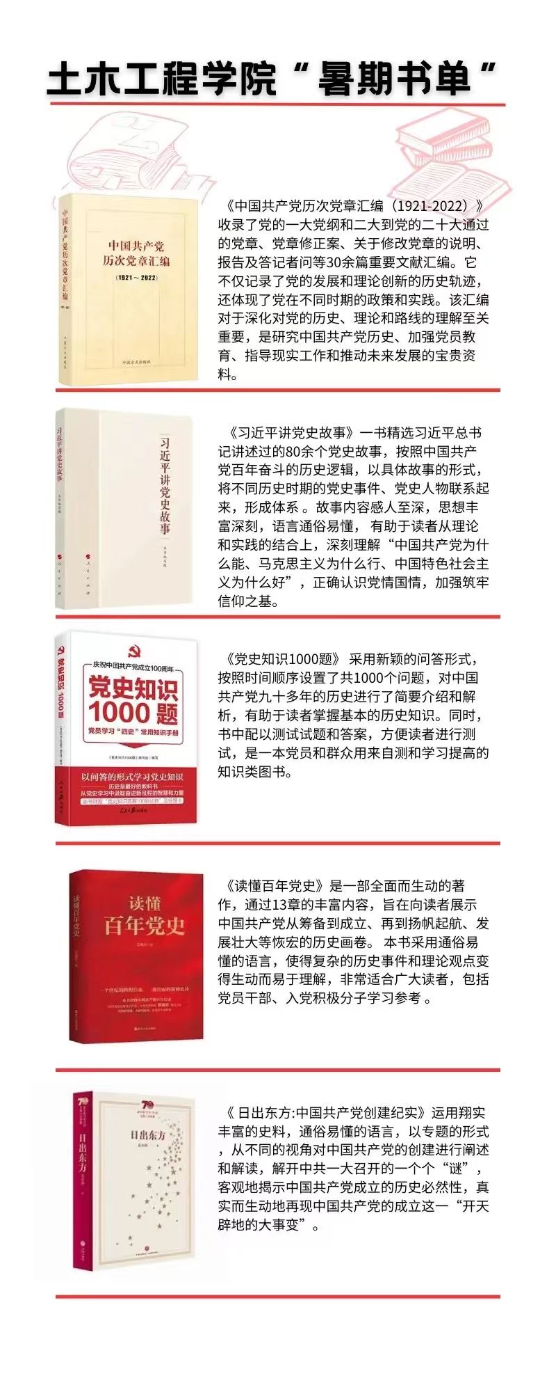 学生可根据参考书目选取书籍进行学习,也可以根据自身的爱好、兴趣、专业等自行选择。本次我们将面向全院学生开展“共读红色名著,传承红色基因”暑期读书分享活动,本次活动将在7月25日-8月15日持续进行,学生可以将读书微日志、读书笔记等进行投稿。