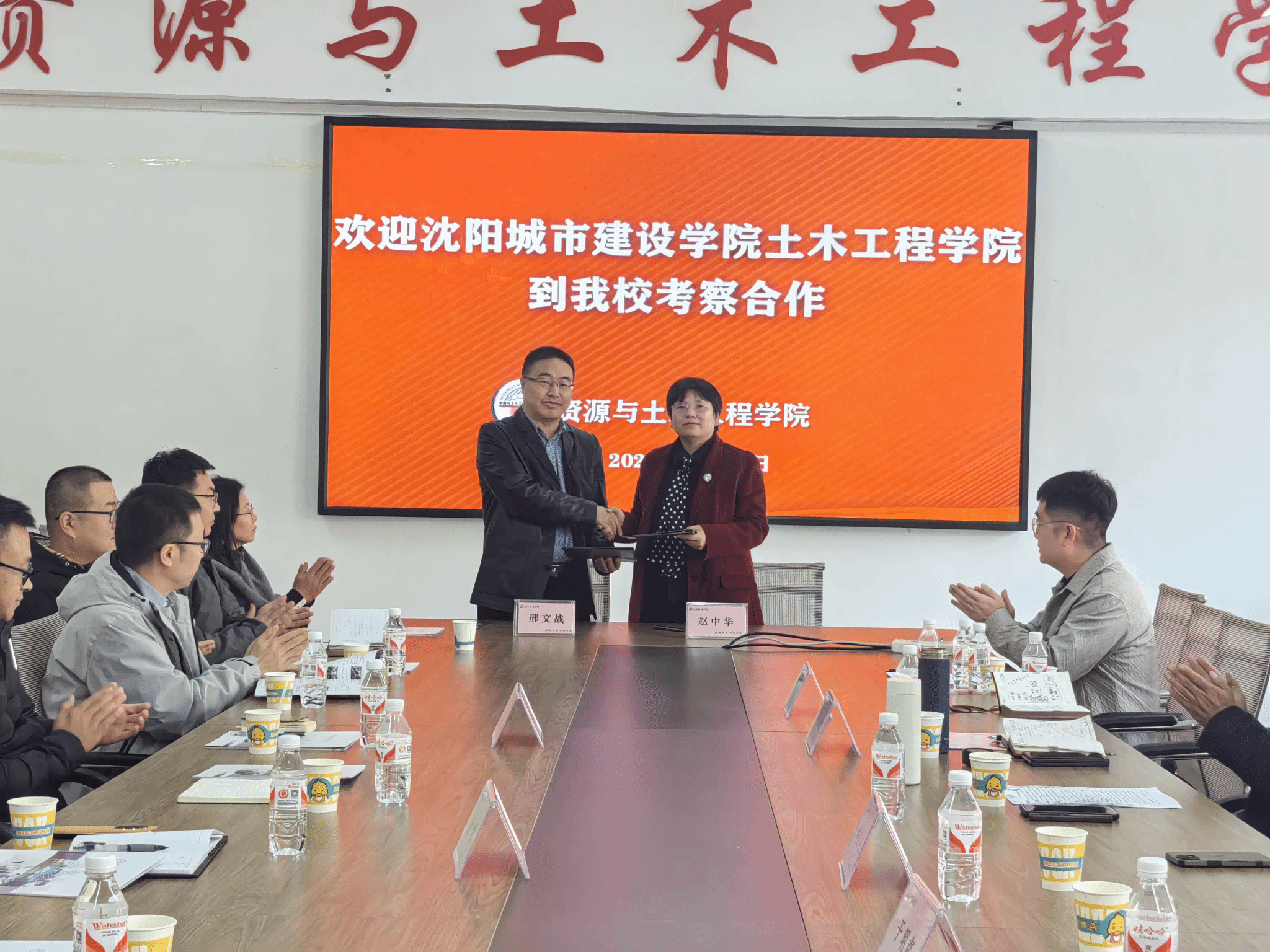 与会双方又围绕人才培养、实践教学、学科竞赛等方面进行了重点讨论。活动中邢文战与赵中华共同签署了院际合作协议,王喜刚与钟建东代表两院互授“实践教学基地”牌匾。