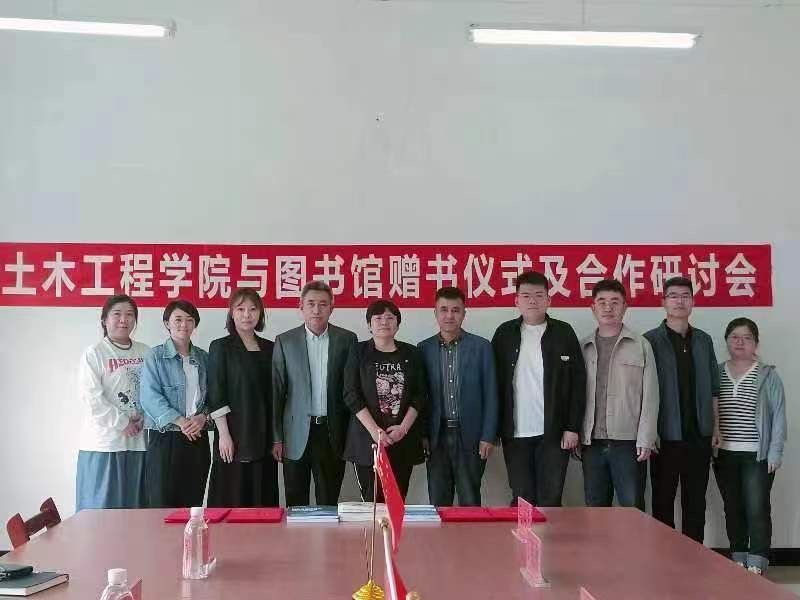 5月31日上午,我校太阳成集团tyc234cc与图书馆在弘德图书馆404会议室举办赠书仪式暨合作交流研讨会。太阳成集团tyc234cc院长赵中华,副院长齐庆会、于明鑫,院长助理杨楠,土木工程专业基础教研室主任马丽珠及实验技术教研室主任岳川云;图书馆馆长郭继军,馆长助理兼办公室主任李璘,图书馆采编室主任张国光,图书馆流通室主任于青参加捐赠仪式和交流研讨会。